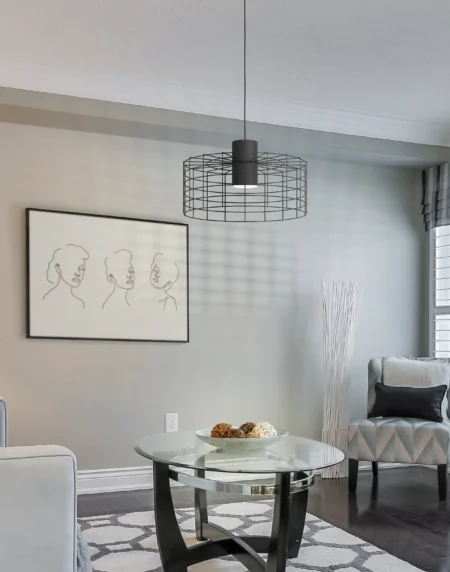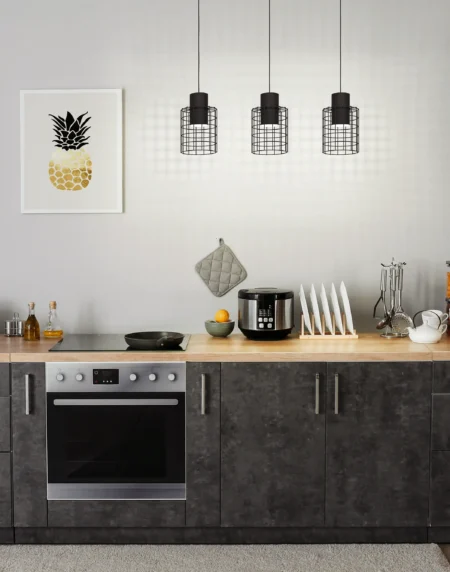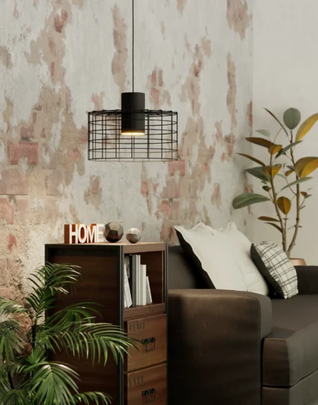 MILLIGAN 1‑Lamp Pendant – Black Wire Cage Steel Shade with White Inner Cylinder, 38cm Ø × 110cm Drop – E27 Socket, 40W Max – Industrial Vintage Accent Lamp