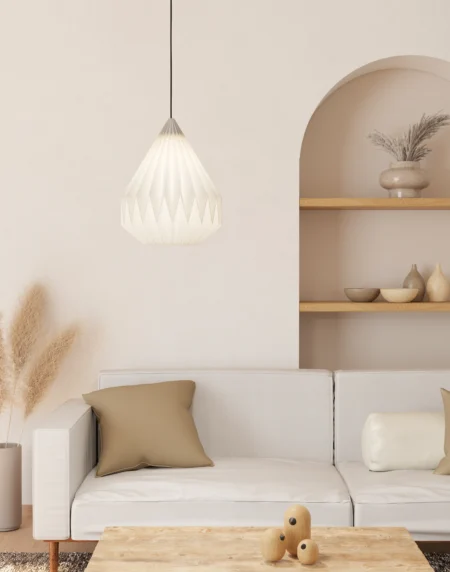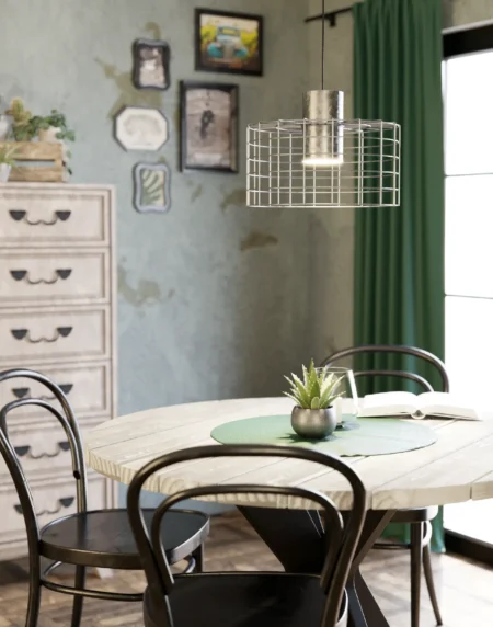 Mioglia1 Pendant Light | Chrome Single-Light Hanging Lamp with Granille-Effect Shade | E14 Socket | Adjustable 2m Drop | Modern Pendant for Dining Room, Kitchen & Bedroom