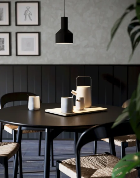 The CARLTON 1 pendant light features a vintage-inspired design crafted with a grey steel enclosure, lending an industrial yet timeless charm to any indoor setting. It measures 1100 mm in height and 310 mm in diameter with a net weight of approximately 1.6 kg. The fixture is designed to accommodate