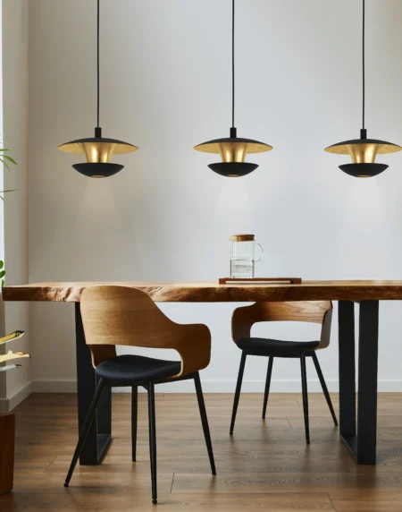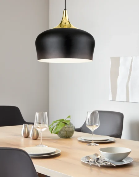 OBREGON Pendant Lamp – Brown Steel Shade with Oak Accent & Cream Interior, E27 Socket (Bulb Not Included), Ø 350 mm × 1 100 mm Height, IP20 – Class II – 2-Year Warranty