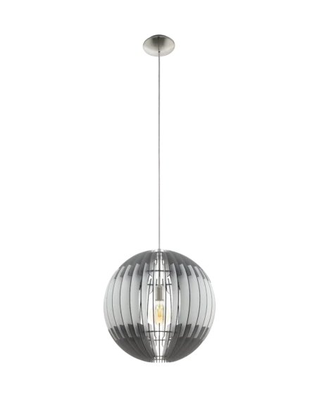 OLMERO Pendant Light – 1×E27 Socket, Satin Nickel Finish with Grey & White Wooden Slats, 60W Max, 50cm Diameter, 1.5m Adjustable Cord, Ideal for Modern Living & Dining Spaces