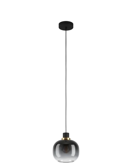 OLTAMAR Pendant Light 390145 | Smoky Grey Ribbed Glass Pendant with Wood Look Accent & Black Finish | E27 Socket | Modern Industrial Ceiling Light for Dining Room, Kitchen, or Living Area