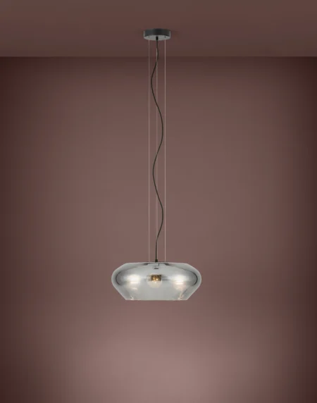 PRIORAT 1‑Lamp Pendant – Black Steel with Smoked Vaporized Glass Dome – Adjustable 1.5m Suspension, E27 Base LED Compatible – Modern Indoor Ceiling Fixture