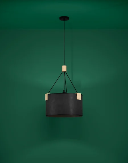 POTOSI 39944 Pendant Lamp – Scandinavian Black Steel & Wood Shade, 1×E27 40W Bulb (Not Included), Adjustable 1,500mm Cable, Ø400mm, Protection Class II, 2‑Year Warranty