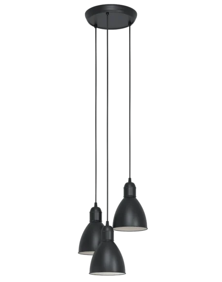 PRODDY 49465 Vintage Black & White Steel 3‑Light Pendant – 3×E27 (Max40W), Ø325mm × 1,100mm Height, IP20 Indoor, 2‑Year Warranty