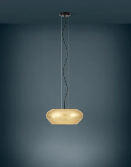 POLVERARA Pendant Light – Black Steel Canopy, Amber-Coated Vaporised Glass Shade, 1×E27 Socket (40W Max), 180mm Ø × 1,500mm H, IP20 Indoor, 2‑Year Warranty