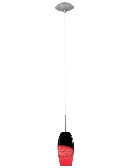 Sleek RIBERA ROSSO pendant light with satin nickel steel frame and handmade glass shade in black and red.