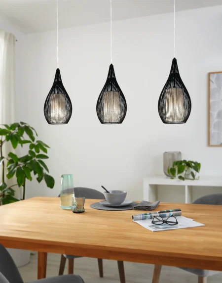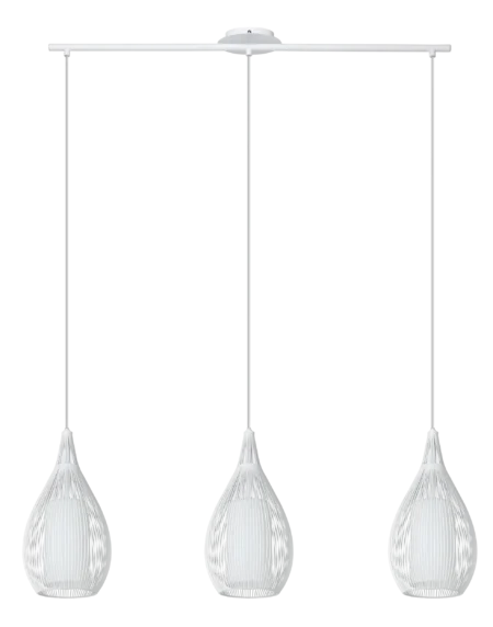RAZONI94388 White 3‑Light E27 Pendant – 39″ Bar, Satin Glass & Steel, Scandinavian Style, 38.9″ L × 7.5″ W × 43.3″ Drop