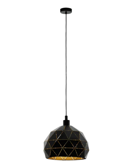 ROCCAFORTE97841 Pendant Light – Black Steel Shade with Gold Interior & Geometric Cut‑Outs, E27 Socket, Ø40cm × H110cm, Dimmable‑Ready, IP20, 2‑Year Warranty