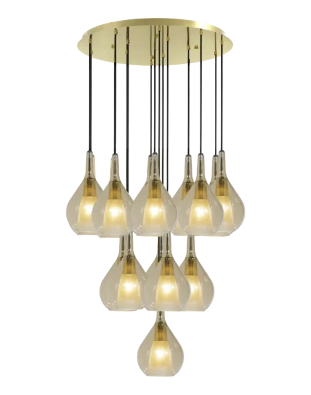 SANSEPOLCRO Pendant Lamp – 148 cm Length x 26 cm Width x 130 cm Height – 10 x E27 Sockets – 40W Max per Bulb – Shiny Copper Finish – Smoke Glass – Indoor Use