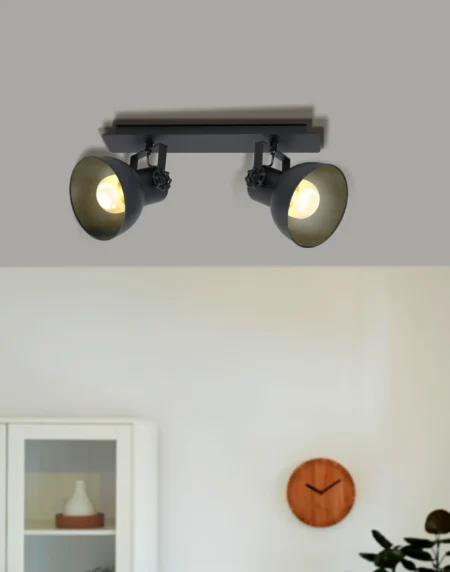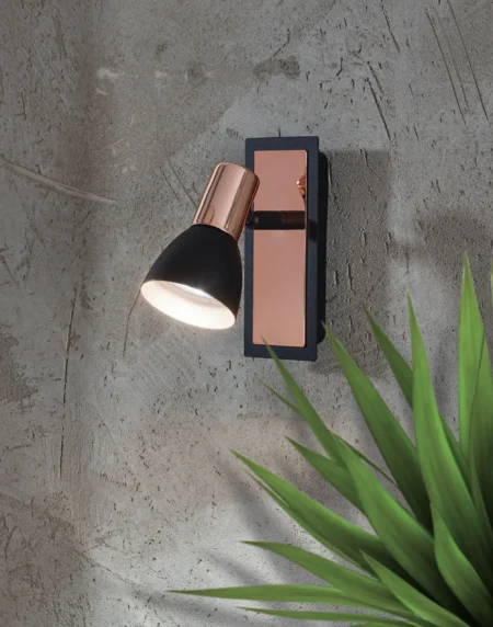 BARNHAM Wall Spotlight – Black & Copper Steel – GU10 Socket – 3.3W LED Included – 250 Lumens – 3000K Warm White – Adjustable Head – Industrial Design – Ideal for Living Room, Bedroom, or Hallway – 2-Year Warranty
