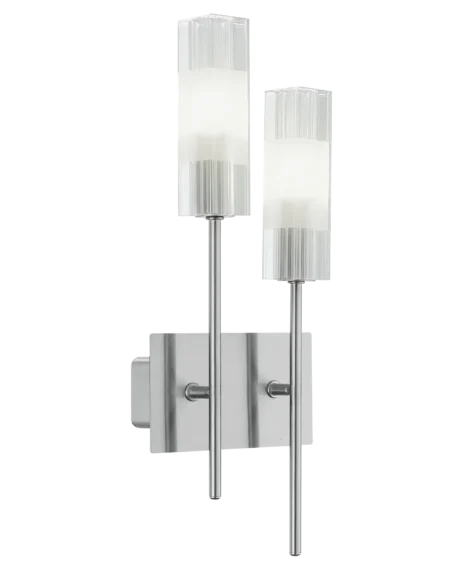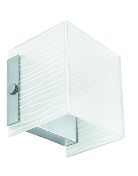 The Alea 91984 is a stylish indoor wall light with a chrome steel enclosure and white satin glass shade with decoration. It features warm white halogen illumination with a G9 lamp socket.