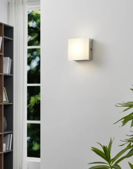The EGLO ABIDA 91559 wall light combines modern design with soft, warm illumination. Featuring a chrome steel body and white satin glass, this compact fixture delivers elegant, glare-free lighting—perfect for hallways, living areas, and bedrooms.