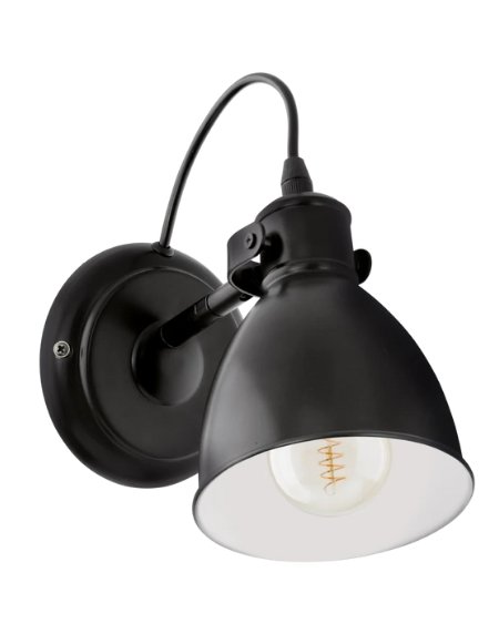 PRODDY Wall Light – Black Steel with White Inner Shade – Adjustable Head – E27 Socket – Dimmable – Vintage Industrial Design – Ideal for Living Room, Bedroom, or Hallway – 2-Year Warranty