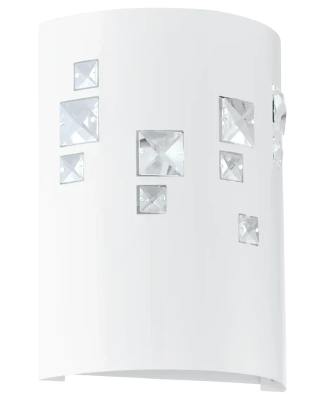 The EGLO 92659 PIGARO wall light features a clean white steel body paired with a brilliant glass shade, offering a stylish and modern lighting solution for bedrooms, hallways, and living spaces.