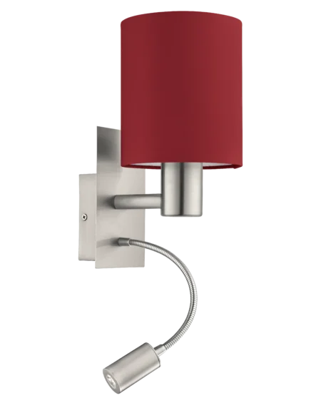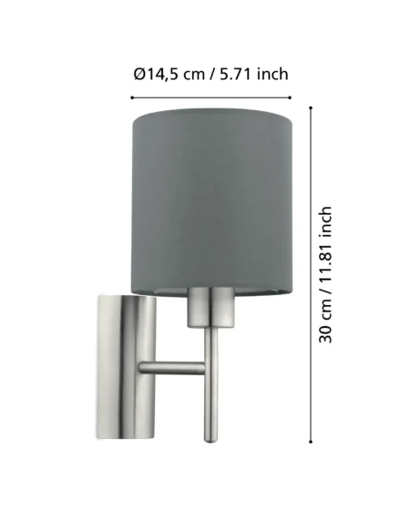 The PASTERI wall light features a refined satin nickel steel finish with a clean, contemporary form. Designed with an integrated rocker switch and standard E27 lamp holder, it is ideal for bedrooms, living areas, corridors, and hospitality interiors.