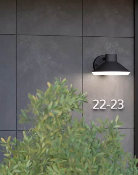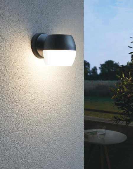 Minimalist Modern Design Slim, anthracite die cast aluminum body with two subtly faceted white plastic Lamp reflectors—perfect for contemporary porches, gates, or garden walls and blends with many exteriors. Bright Integrated Dual LEDs Two 2. 5W warm white (3000K) LED modules deliver a total of 360lumens; energy efficient with ~25,000hours