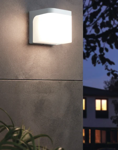 JORBA LED Outdoor Wall Light, 11cm Cube, White Cast-Aluminium with Integrated 6W Warm White (3000K) LED, 500lm, IP44 Waterproof, Cast Aluminium, 5‑Year Warranty