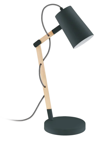 Stylish Mixed Material Design Combines sleek black metal shade and base with a natural wood stem—perfect for home offices, bedside tables, or living rooms for a warm, contemporary look. Standard E27 Socket (Bulb Not Included) Compatible with one E27 bulb up to 60W—supports LED, incandescent, or filament bulbs for customizable