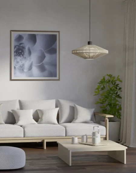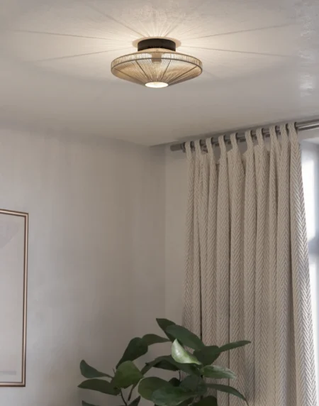 MIDSUMER Ceiling Lamp – Black Steel Frame with Cream Fabric Shade – E27 Socket – 175 mm Height, 380 mm Diameter – Protection Class 1 – 220–240V – 5-Year Warranty