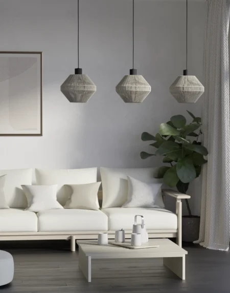 A modern linear pendant light in black steel, ideal for illuminating long dining tables and kitchen islands.