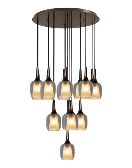CORNACCHIOLA Pendant Lamp – 170 cm Height x 78 cm Diameter – 16 x E27 Sockets – 40W Max per Bulb – Dark Bronze Steel – SLamply Black Vaporized Glass – Decorative Indoor Lamping