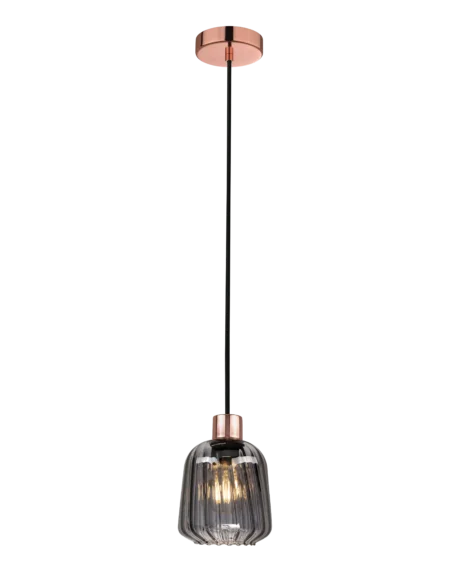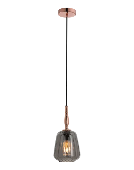 GIOIELLA Pendant Light – Steel & Shiny Copper Ceiling Lamp with Smoke Glass Shade, E27 Bulb Compatible, 40W Max, 1100mm Height, 110mm Diameter