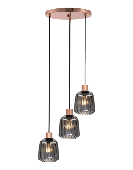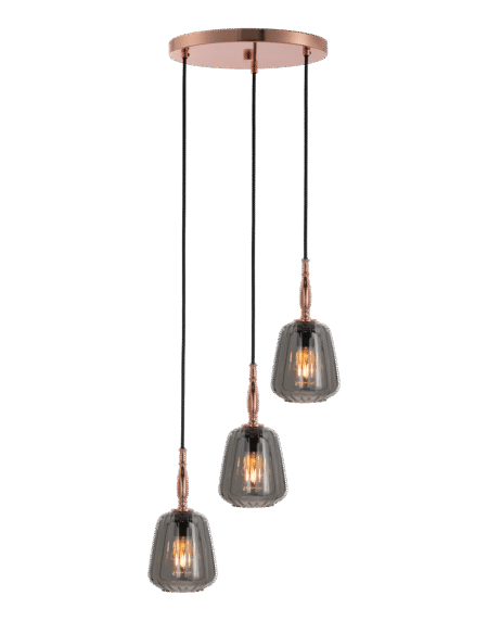 GIOIELLA Pendant Light – Steel & Shiny Copper Ceiling Lamp with Smoke Glass Shade, 3 x E27 Bulbs Compatible, 40W Max, 1500mm Height, 300mm Diameter