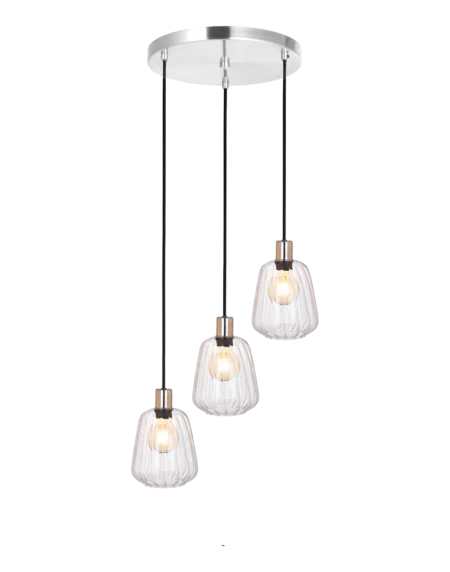 GIOIELLA Pendant Lamp – Chrome Steel Frame with Clear Glass Shade, 3 x E27 Bulbs Compatible, Max 40W, 1500mm Height, 300mm Diameter