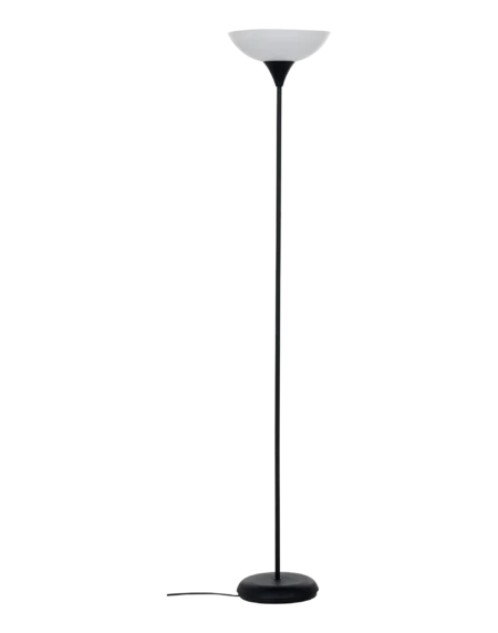 JAY 300681 FLOOR LIGHT – Modern Indoor Lamp, Black Steel with White Plastic Shade, E27 Holder, AGL Compatible, 1500 mm Height x 260 mm Diameter, IP20 Rated