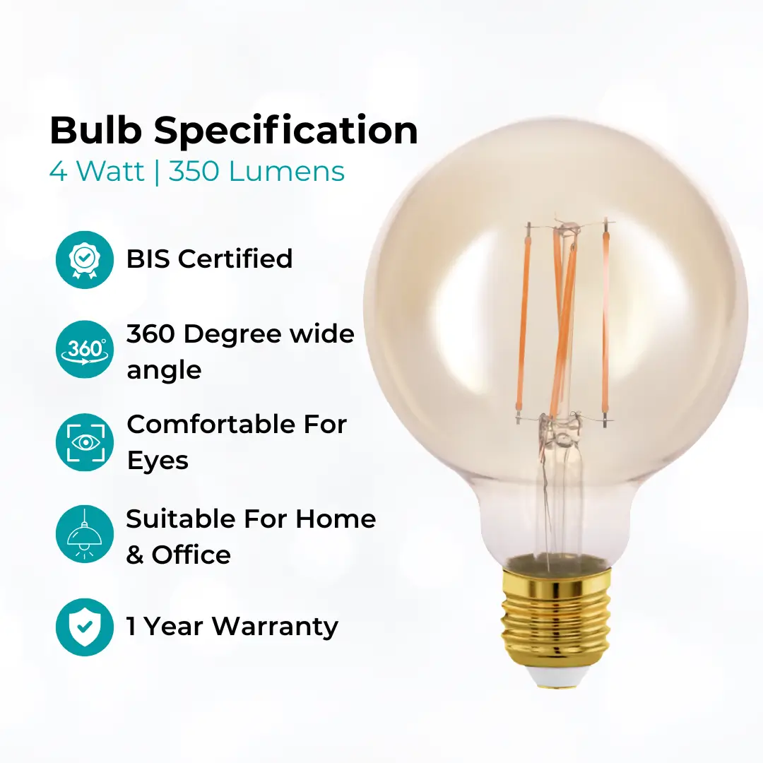 Brightness: Offering 350 Lumens of soft, warm illumination, this bulb provides the perfect lighting for decorative purposes, making it ideal for creating a cozy and aesthetically pleasing atmosphere.