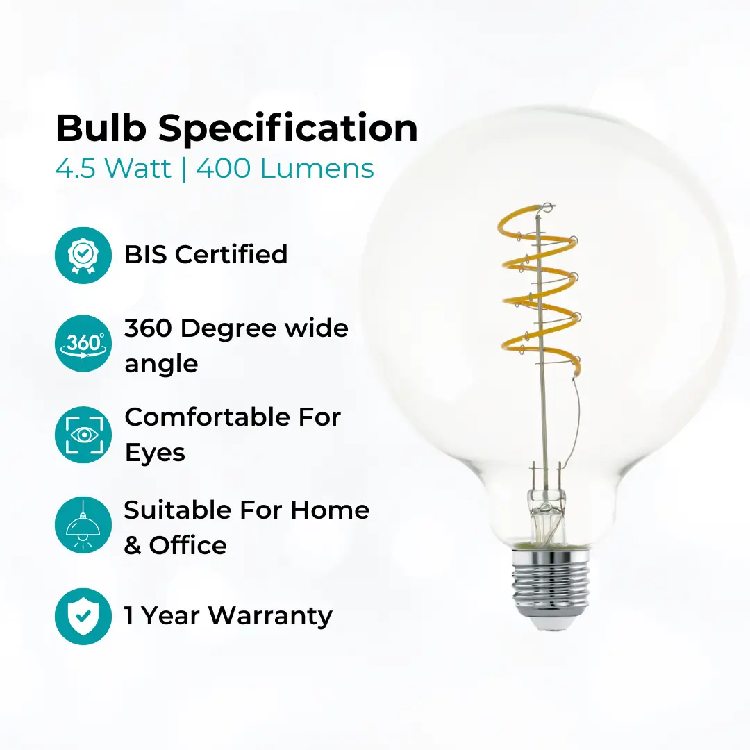 Energy Efficient: Consuming only 4.5W, this bulb provides 400 Lumens of illumination, making it an energy-efficient choice for creating ambient lighting without compromising on brightness.