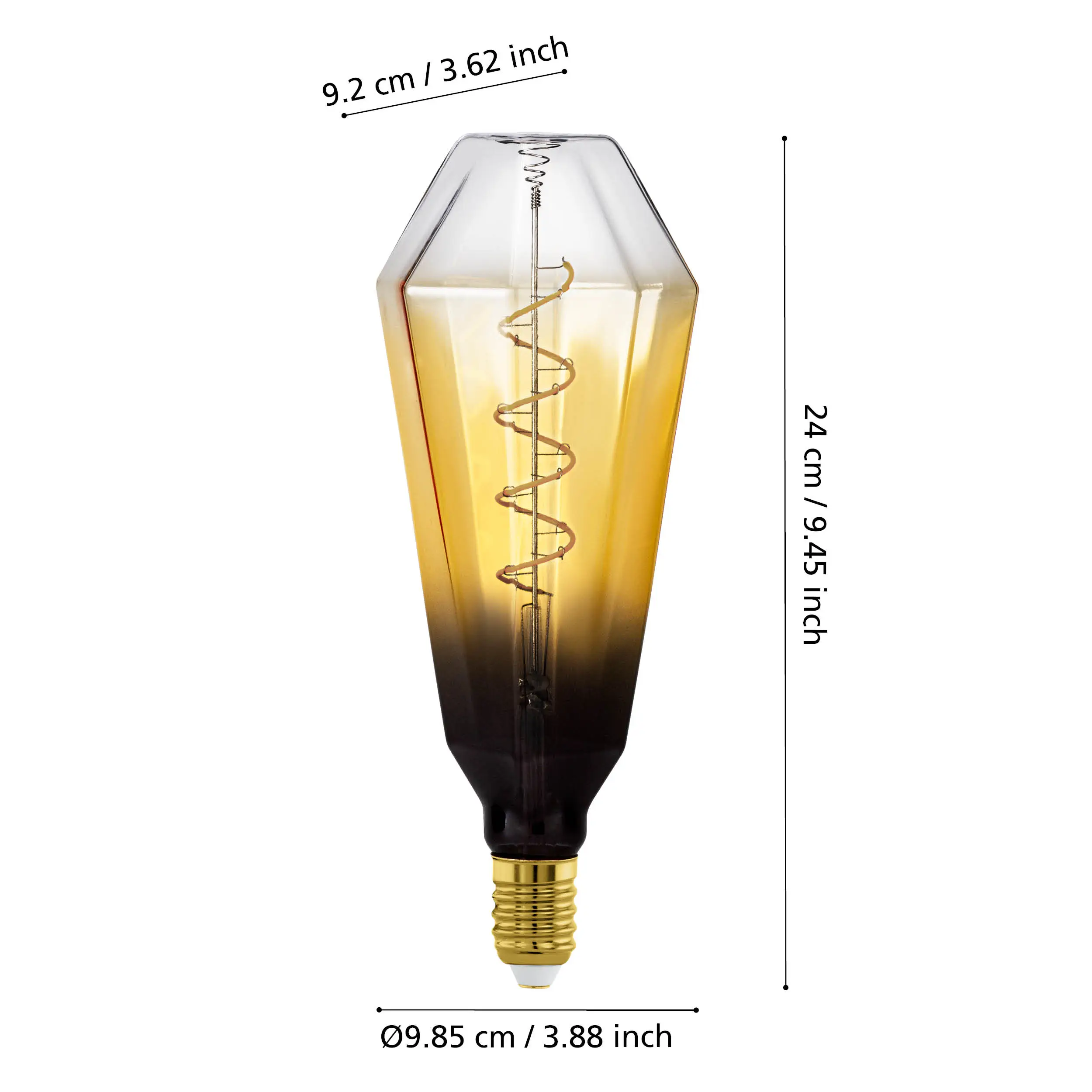 Unique ombré glass design – T100-size bulb features amber-to-black gradient glass, offering a striking decorative accent for exposed fixtures.