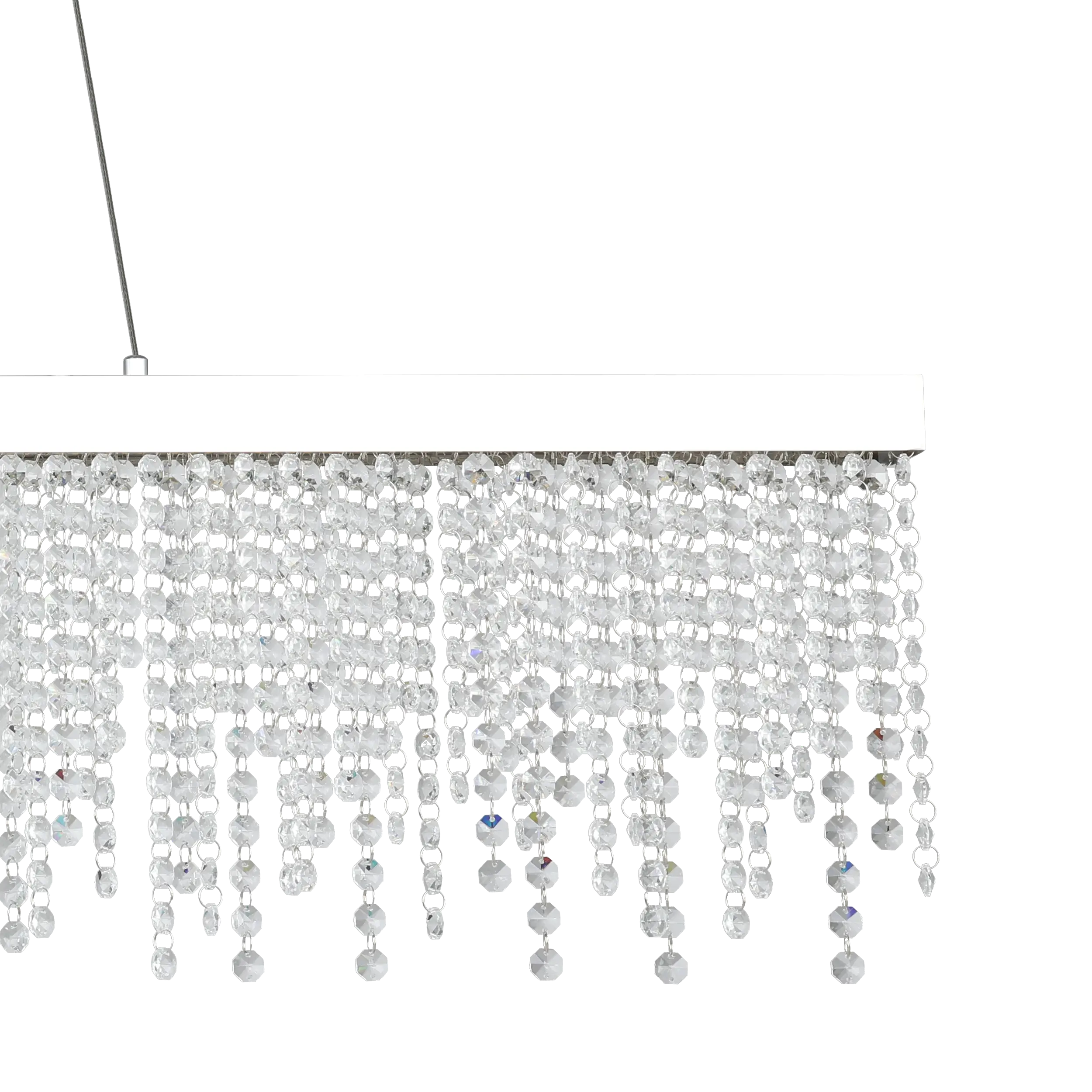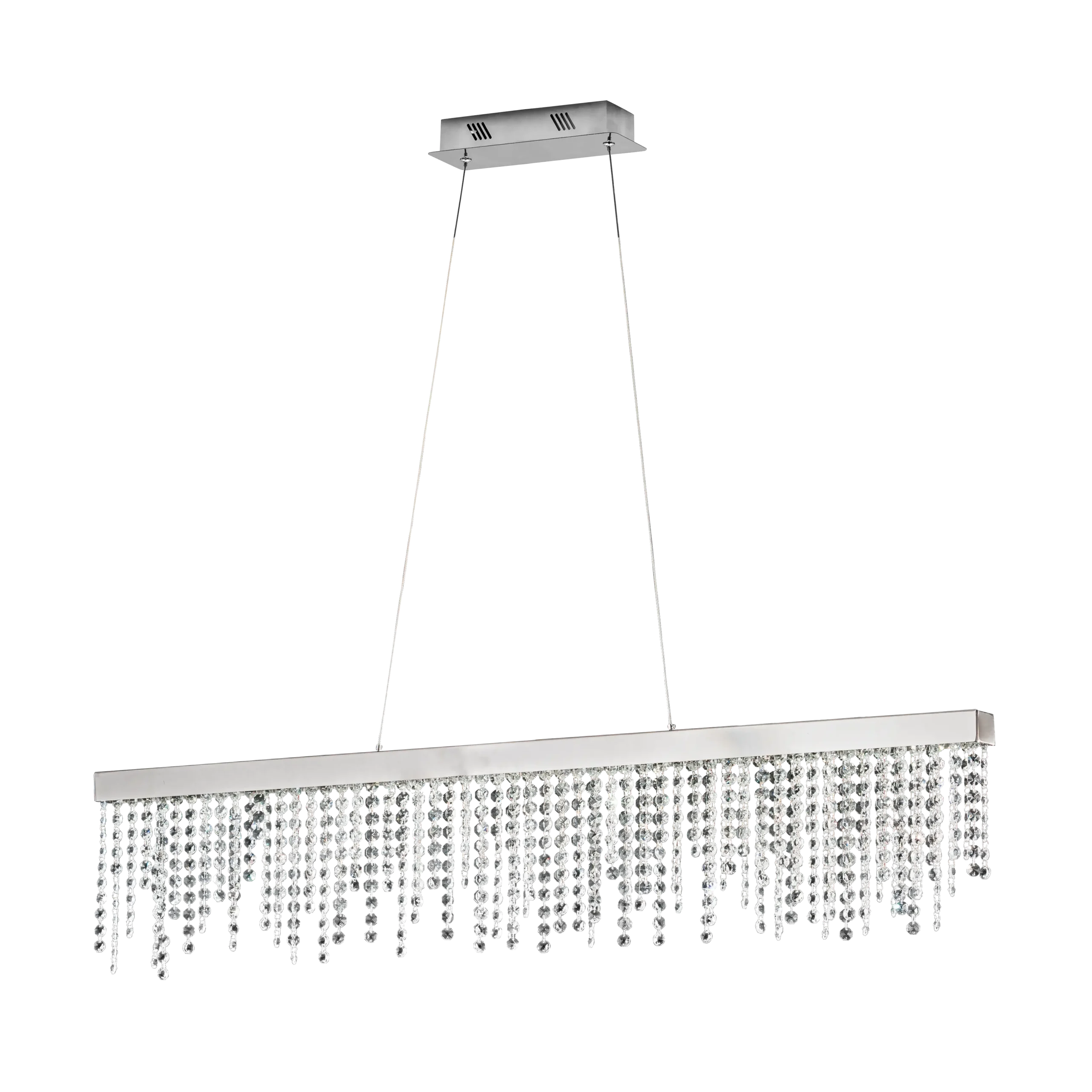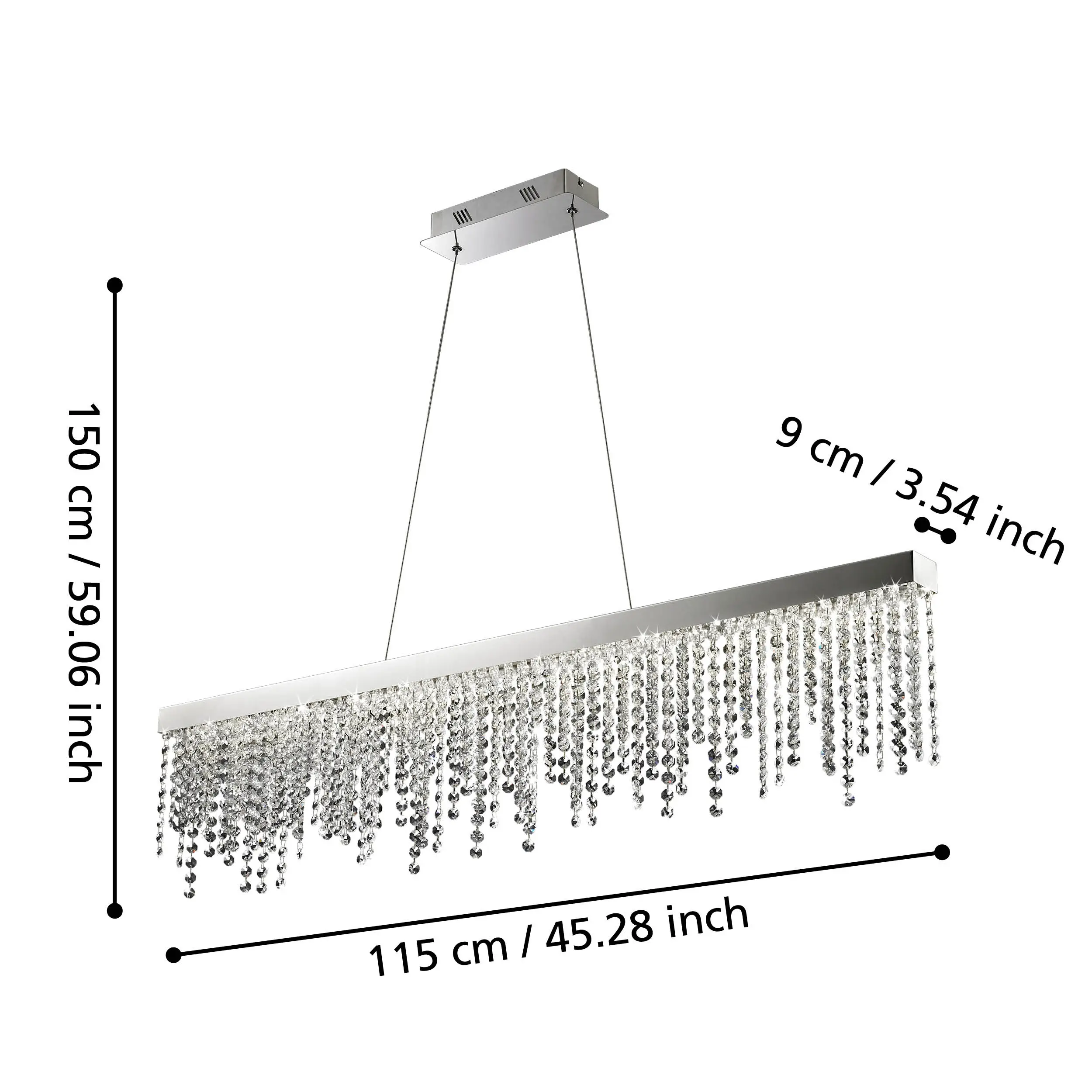 Elegant Crystal Design: The EGLO ANTRLAO 39284 pendant features a polished chrome steel frame adorned with clear crystal strands, creating a luxurious, eye-catching shimmer perfect for modern living and dining spaces .