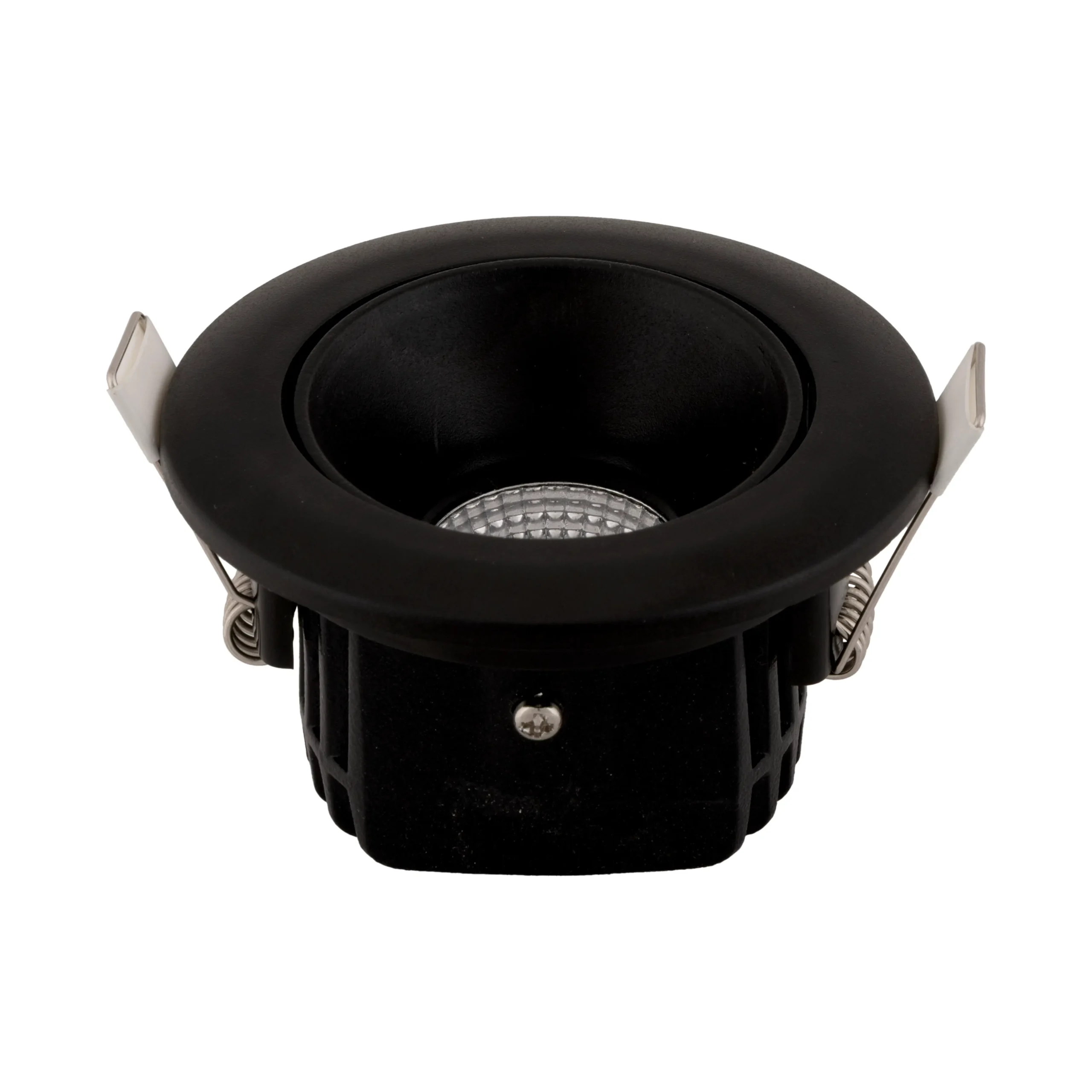 A powerful 12W swivel-adjustable COB downlight featuring a durable PC frame with a sleek Black body and refined Chrome trim. Using an Evercore chip delivering up to 1200 lm (1140 lm effective), it offers crisp 4000K neutral-white illumination with a focused 36° beam angle.