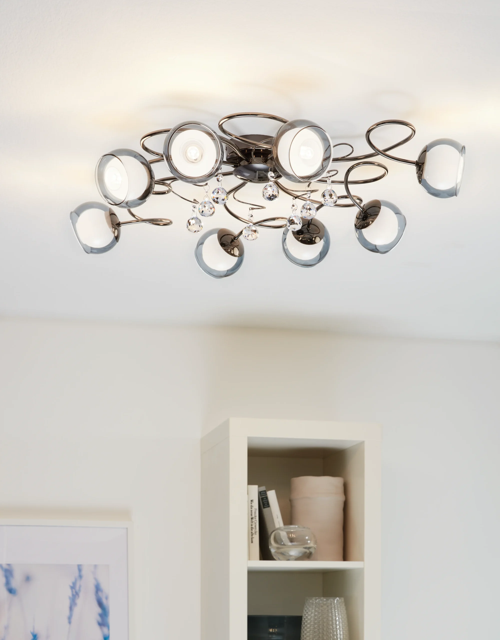 Ascolese1 95161 LED Ceiling Light – 33¾″ Ø Brushed Nickel/Nero Finish, 8× G9 LED (2.5W Each), Smoke & Clear Glass Shades, Modern Flush-Mount