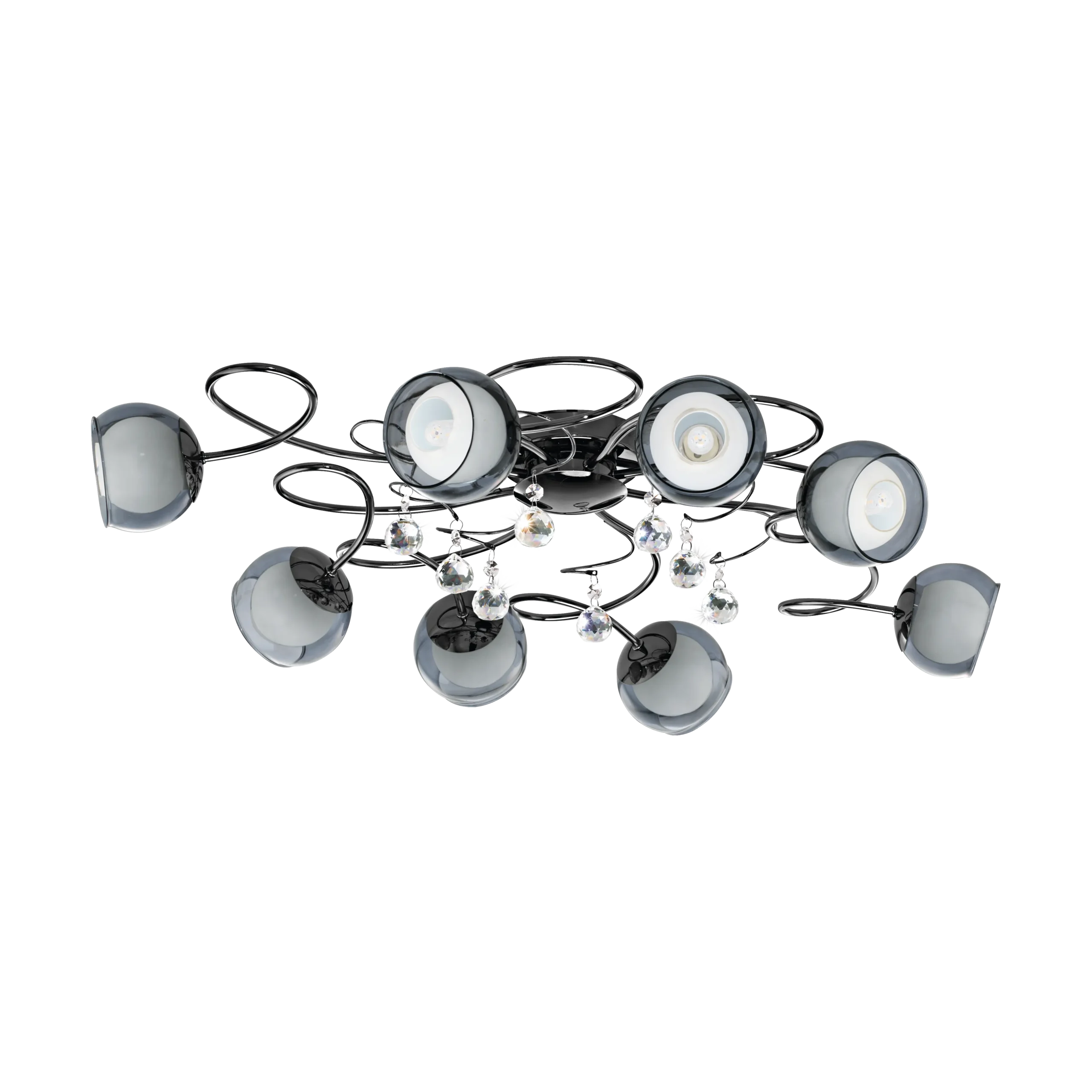 Striking modern chandelier design – Features eight smoke-tinted and clear globe glass shades attached to a swirling brushed-nickel/nero steel frame, adding artistic flair to living rooms, dining spaces, or kitchens.