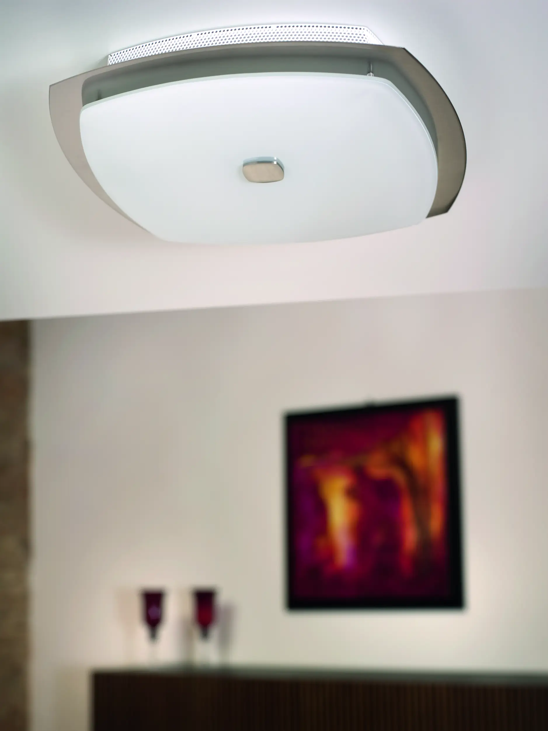 This ceiling lamp combines a satin‑nickel steel body with a white glass diffuser to produce smooth, comfortable ambient lighting. The close‑mount design incorporates three E14 lamp holders (lamps not included) for flexible brightness and color temperature selection on 220–240 V mains. With IP20 protection and Protection Class I, it delivers dependable indoor performance for living spaces, kitchens, and hallways.