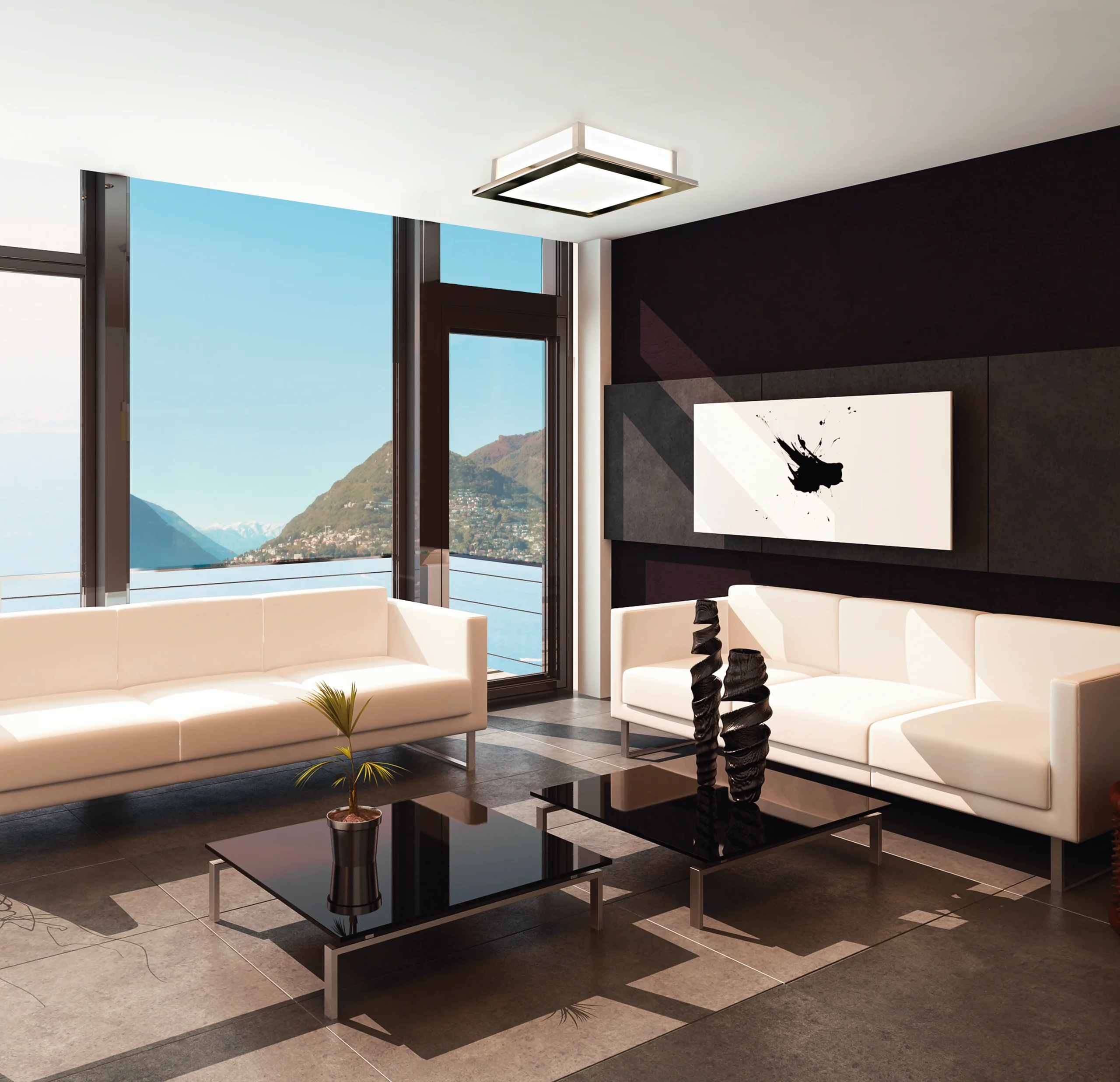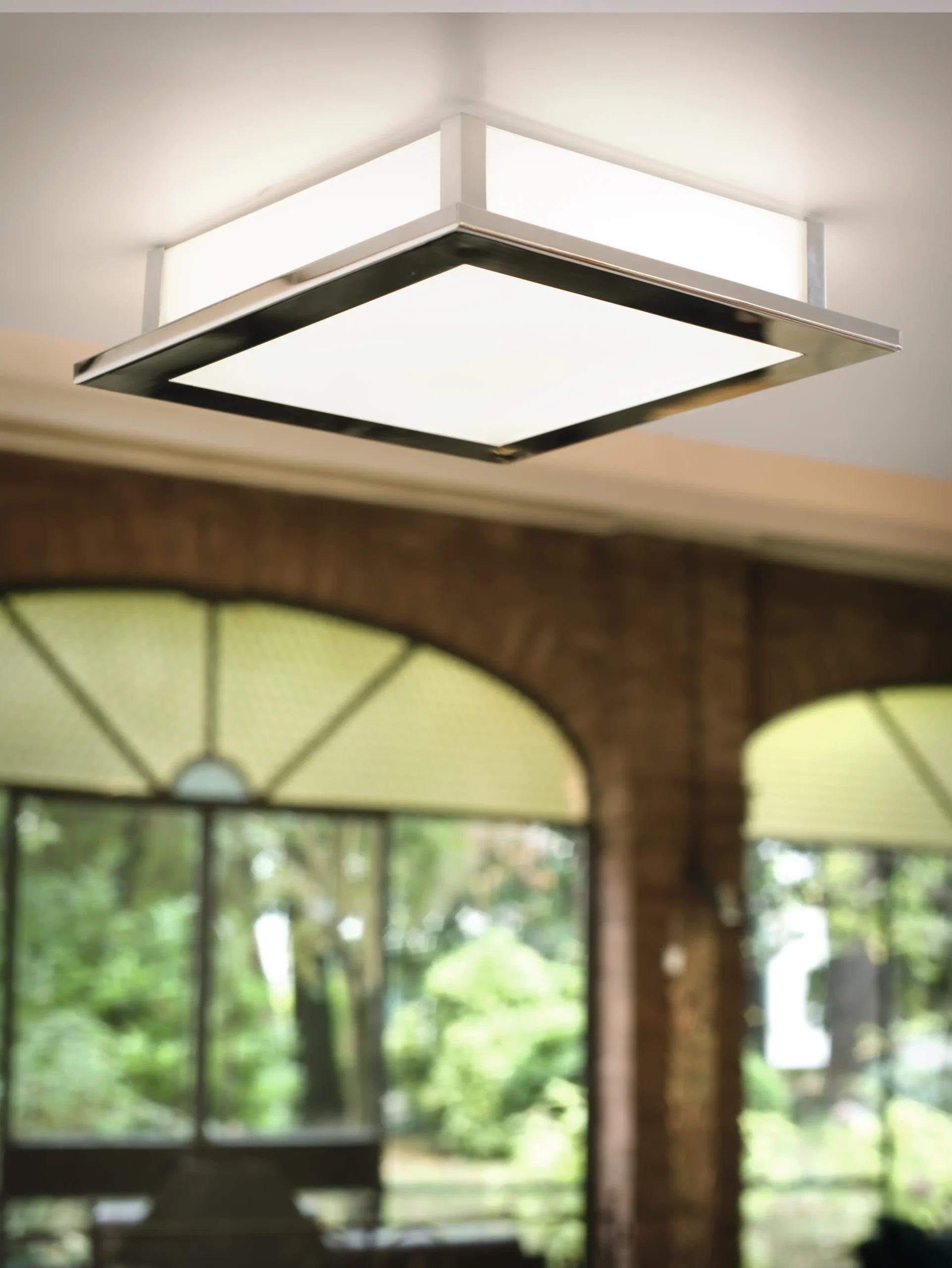 Minimalist Square Design: Features a sleek satin-nickel steel frame holding a satin glass diffuser, producing soft, uniform ambient light—ideal for modern living rooms, bedrooms, hallways, or entryways.
