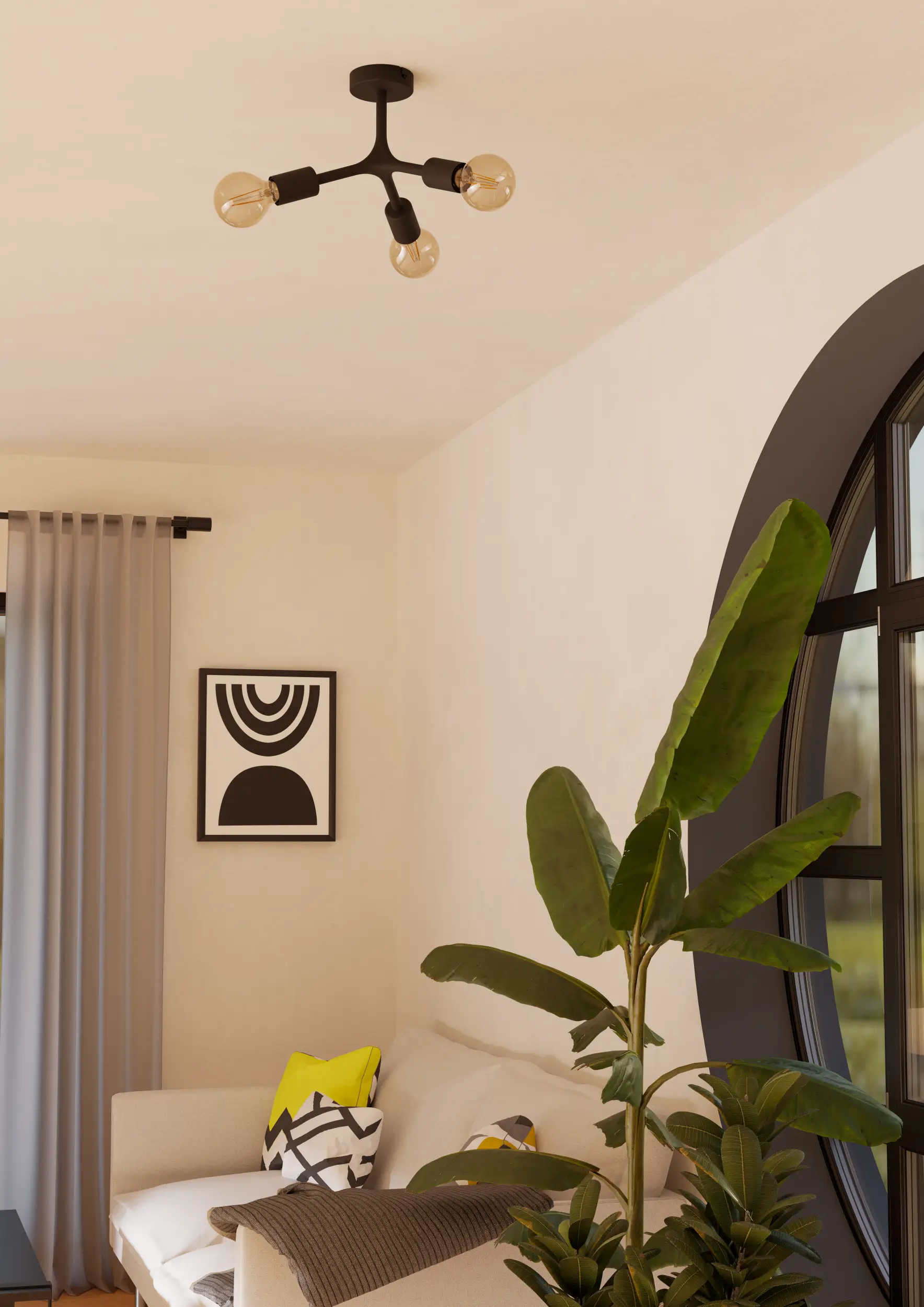 Triple Adjustable Light Points – Equipped with three E27 sockets (each supporting up to 60W; bulbs not included), allowing you to create customized lighting setups using LED, smart, filament, or dimmable bulbs .