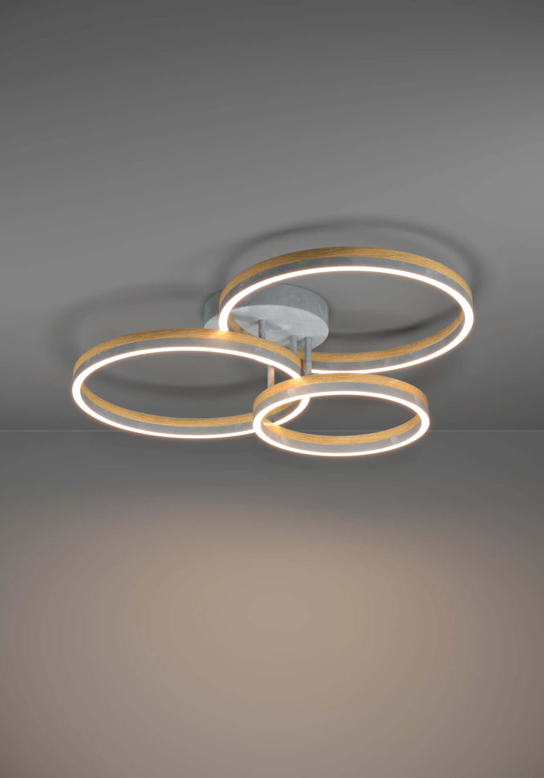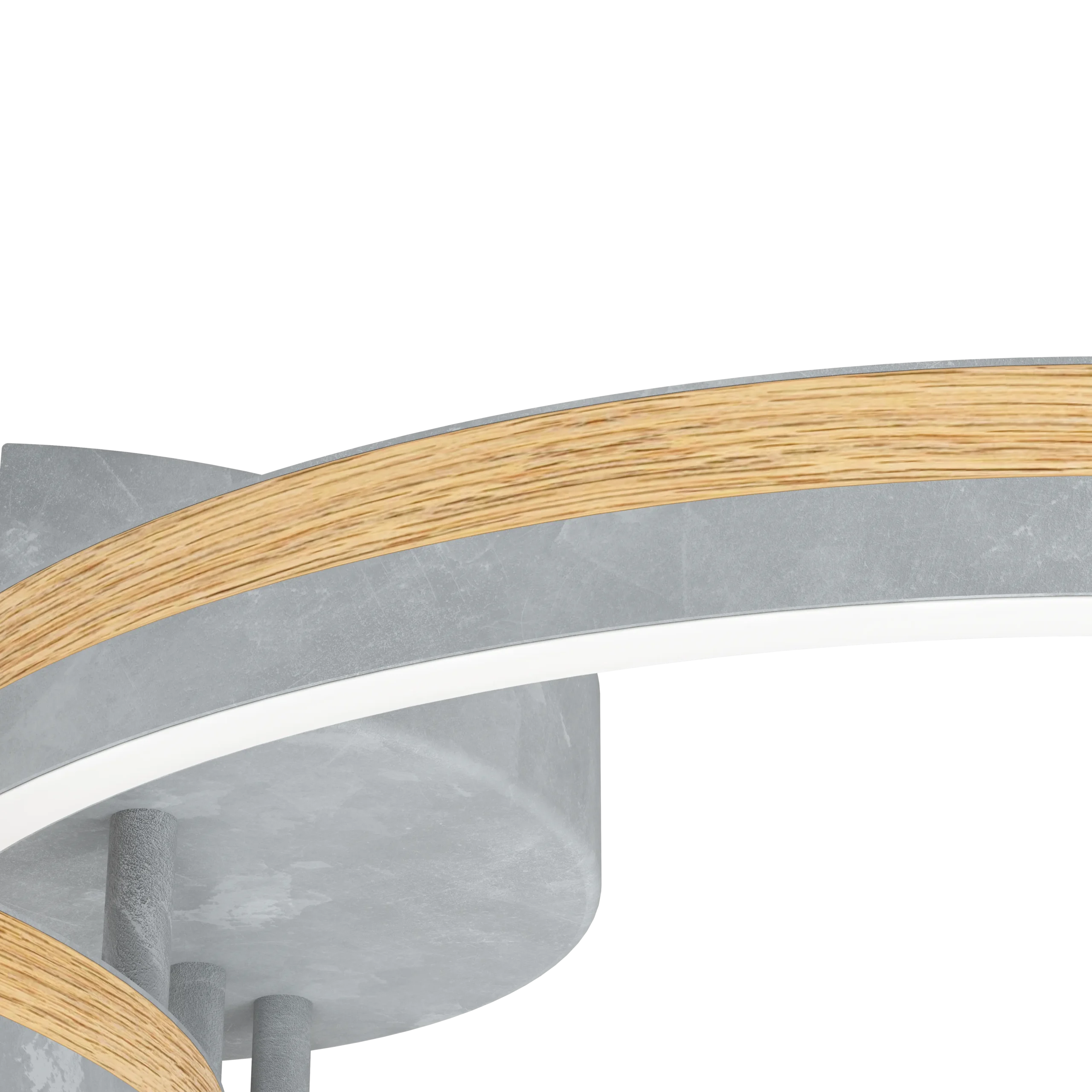 Contemporary Mixed-Material Design – stylish grey & Brown Steel-and-Wood frame paired with a sleek White Plastic diffuser for a modern aesthetic.