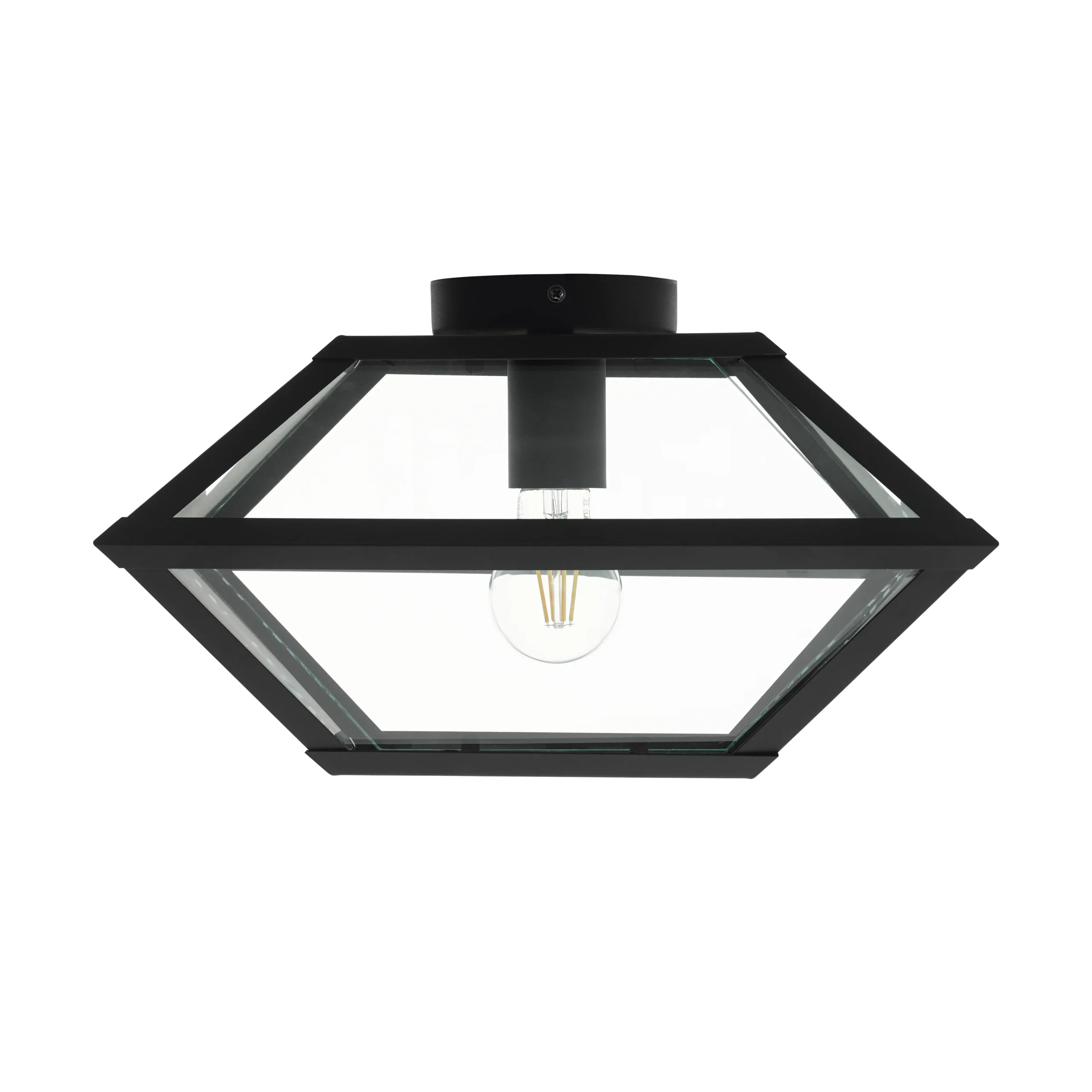 Contemporary Pyramid Design – Features a black powder-coated steel frame encasing clear glass panels in a low-profile pyramid shape, offering modern style with visual elegance for living rooms, hallways, or kitchens.