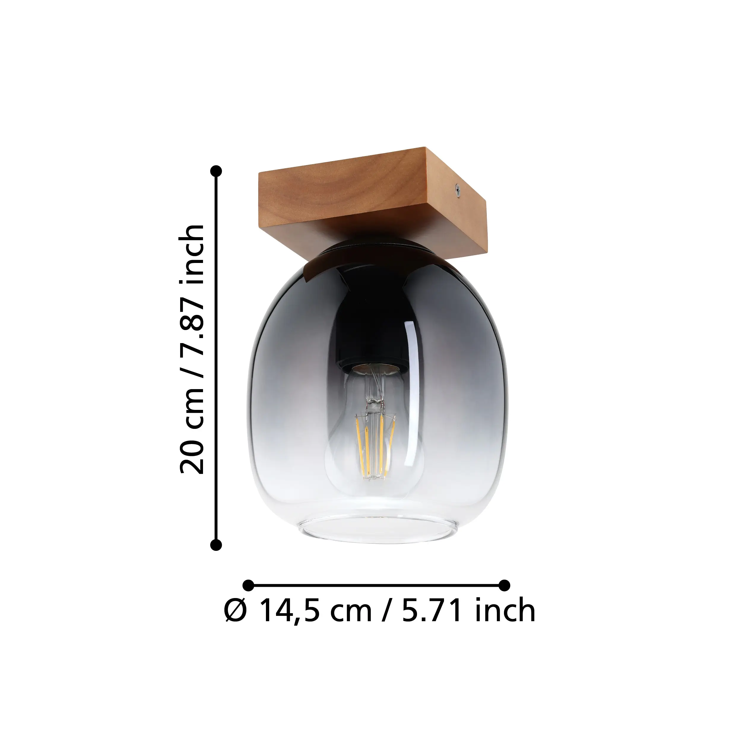 FILAGO Ceiling Light 900825 – Walnut Wood & Smoke-Gradient Glass, E27 Single-Pendant