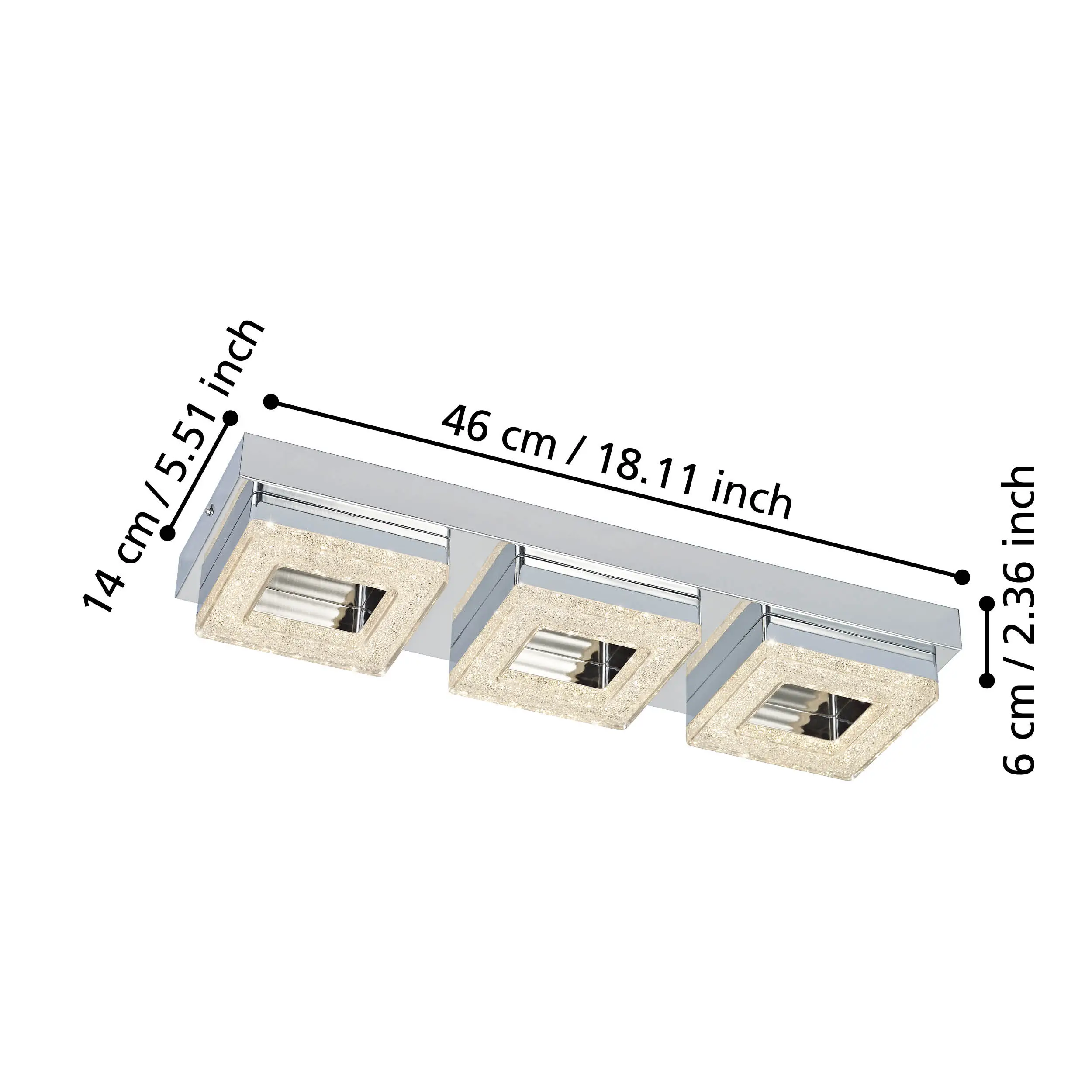 FRADELO 95656 3‑Light LED Flush Ceiling/Wall Light – Chrome Steel & Clear Crystal Finish, 1,200lm Warm White, 18″×5.5″