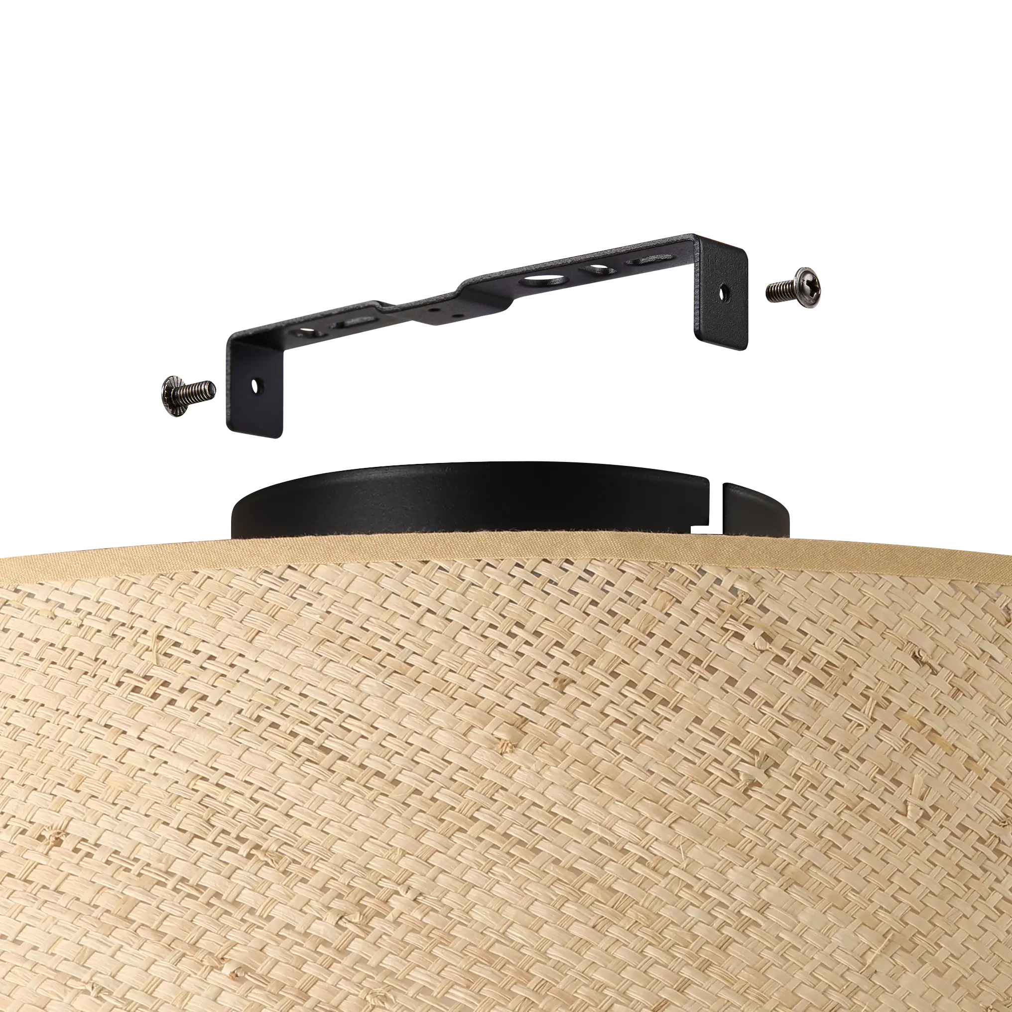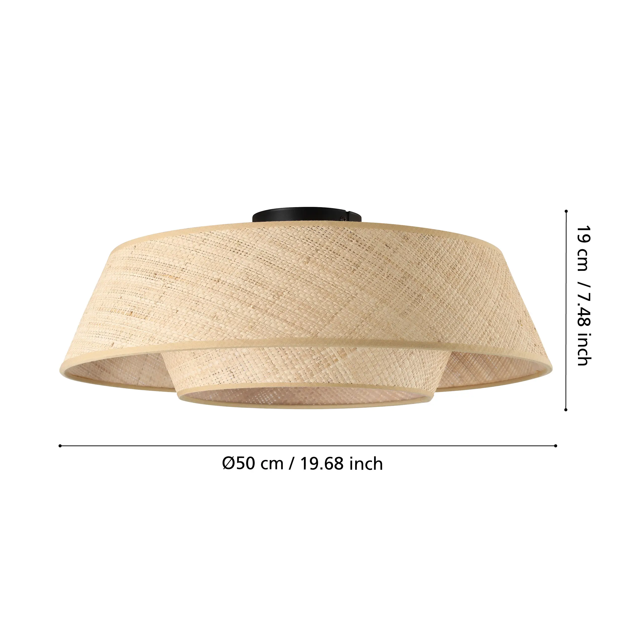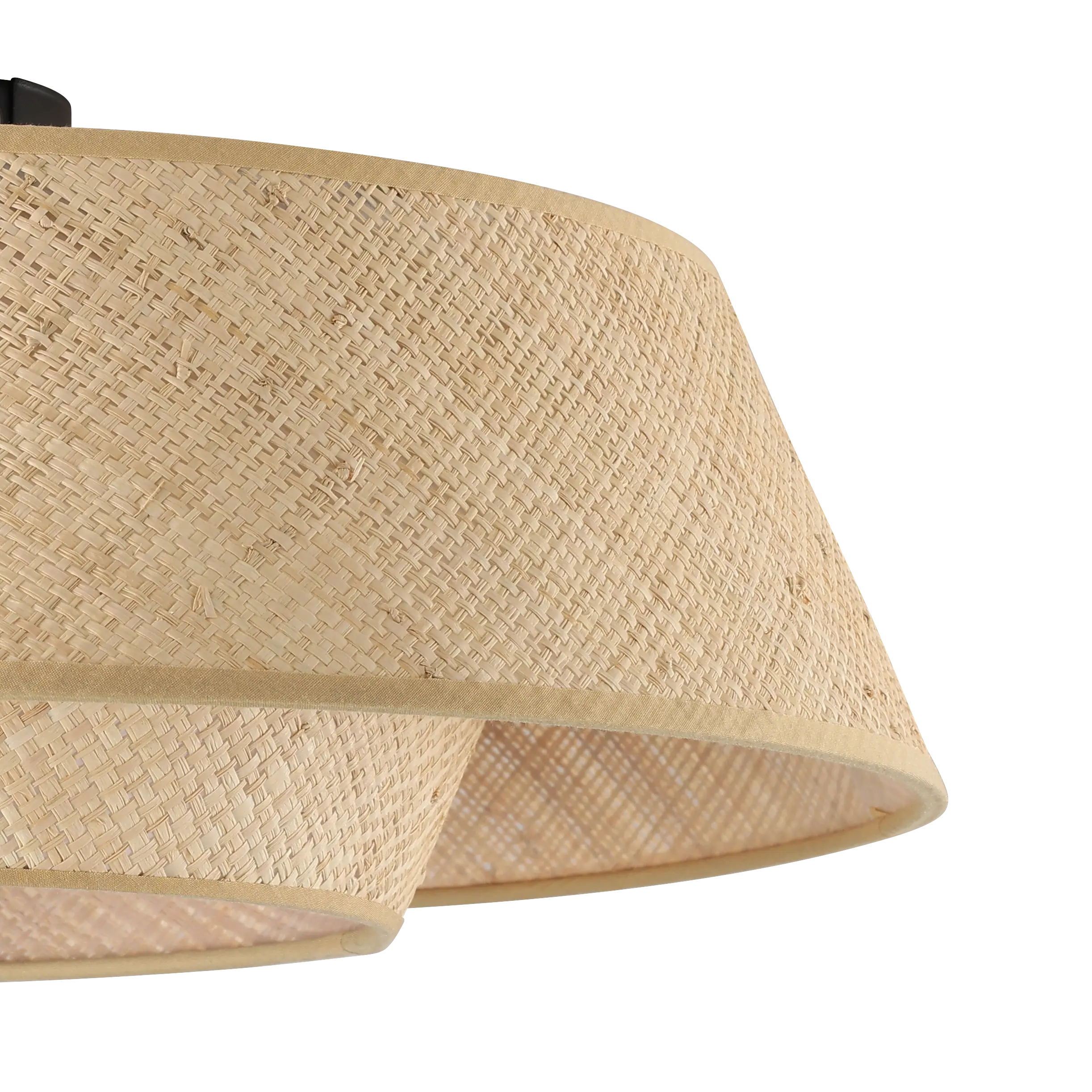 This ceiling fixture combines a sleek black steel base with a woven natural bast (raffia) shade, featuring layered rings for a warm, textured ambiance. It beautifully complements Scandinavian, boho, or Japandi interiors.