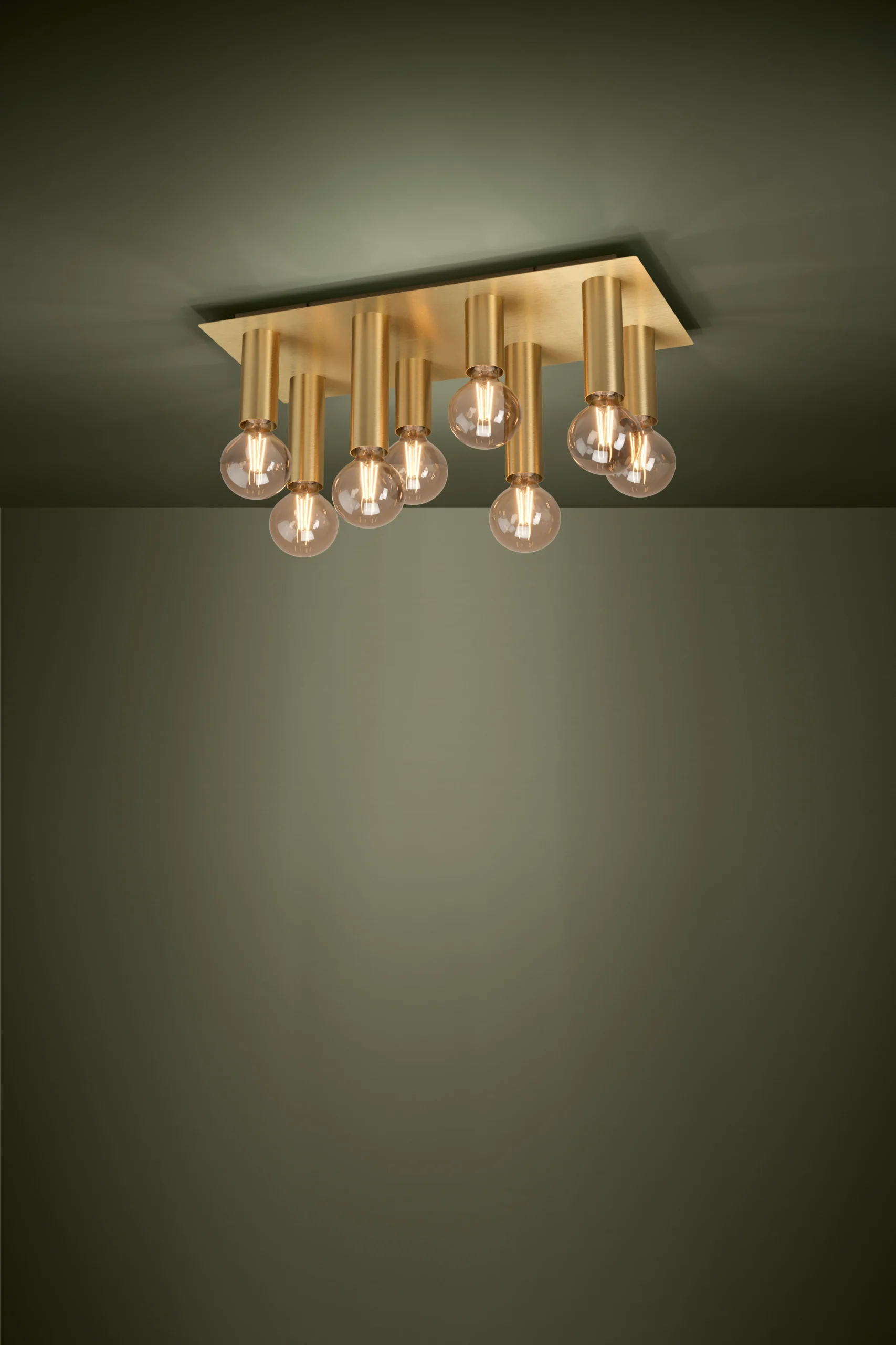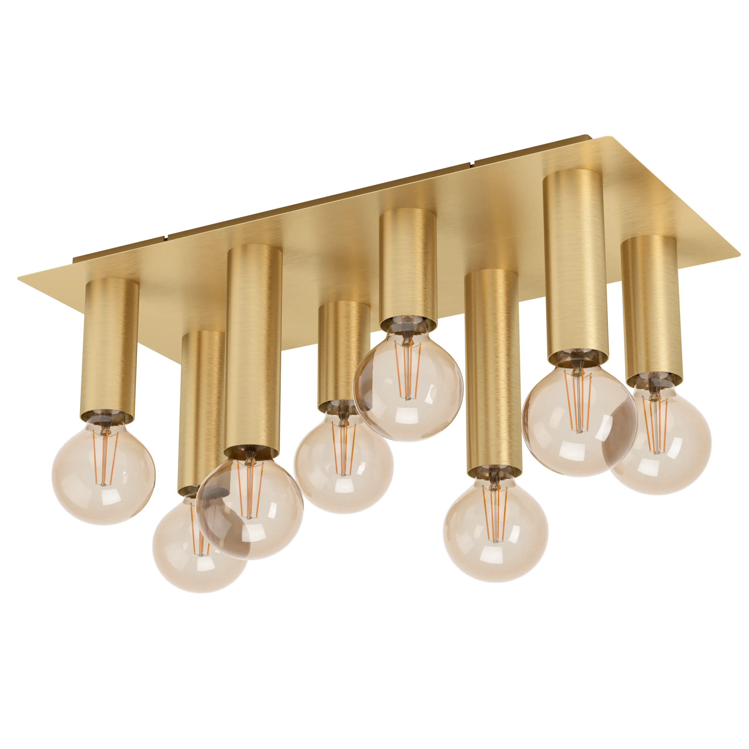 Modern Rectangular Design: Features a brushed brass steel base with eight E27 sockets arranged in a clean, linear layout—perfect for adding a contemporary touch to kitchens, dining rooms, or living spaces.