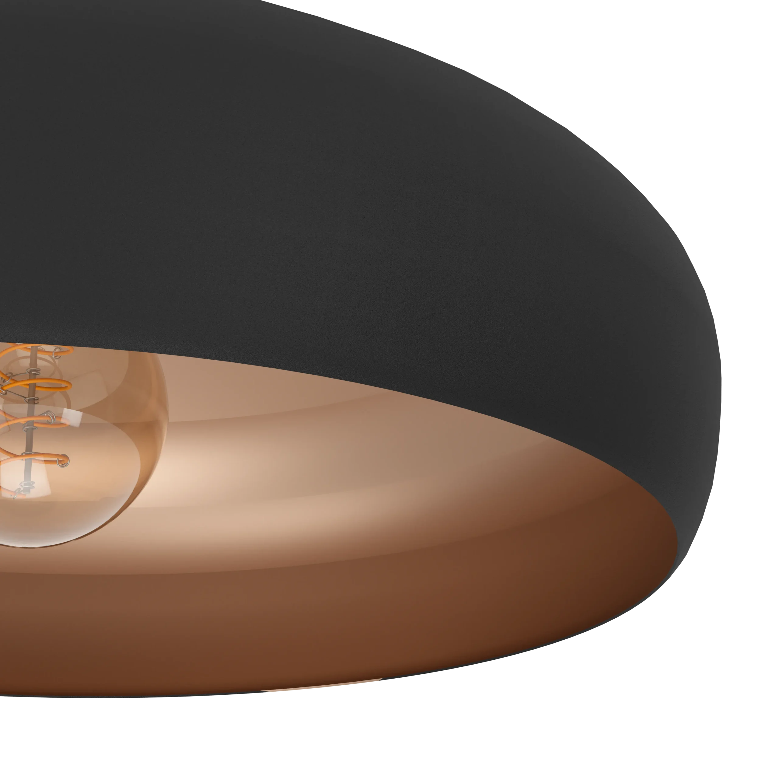 Mogano94547 Black/Copper Dome LED-Ready Flush Ceiling Light – 15.7″ Ø × 6.7″ H, E27 Socket, Vintage Industrial Style, 2‑Year Warranty