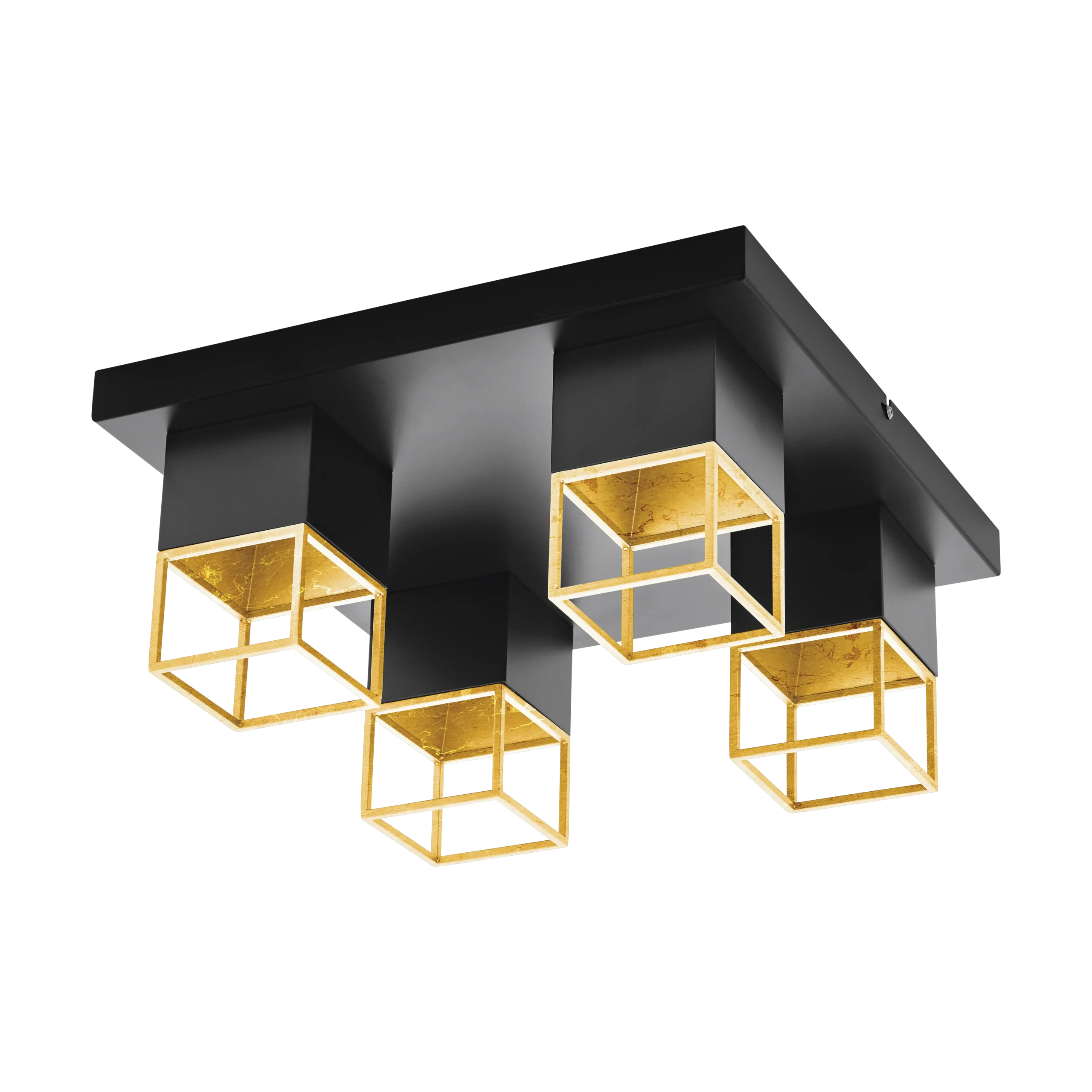 Modern Black & Gold Design – Stylish square ceiling fixture crafted from black steel with elegant gold-accented cube enclosures for a sleek, contemporary look that enhances living rooms, kitchens, and bedrooms.