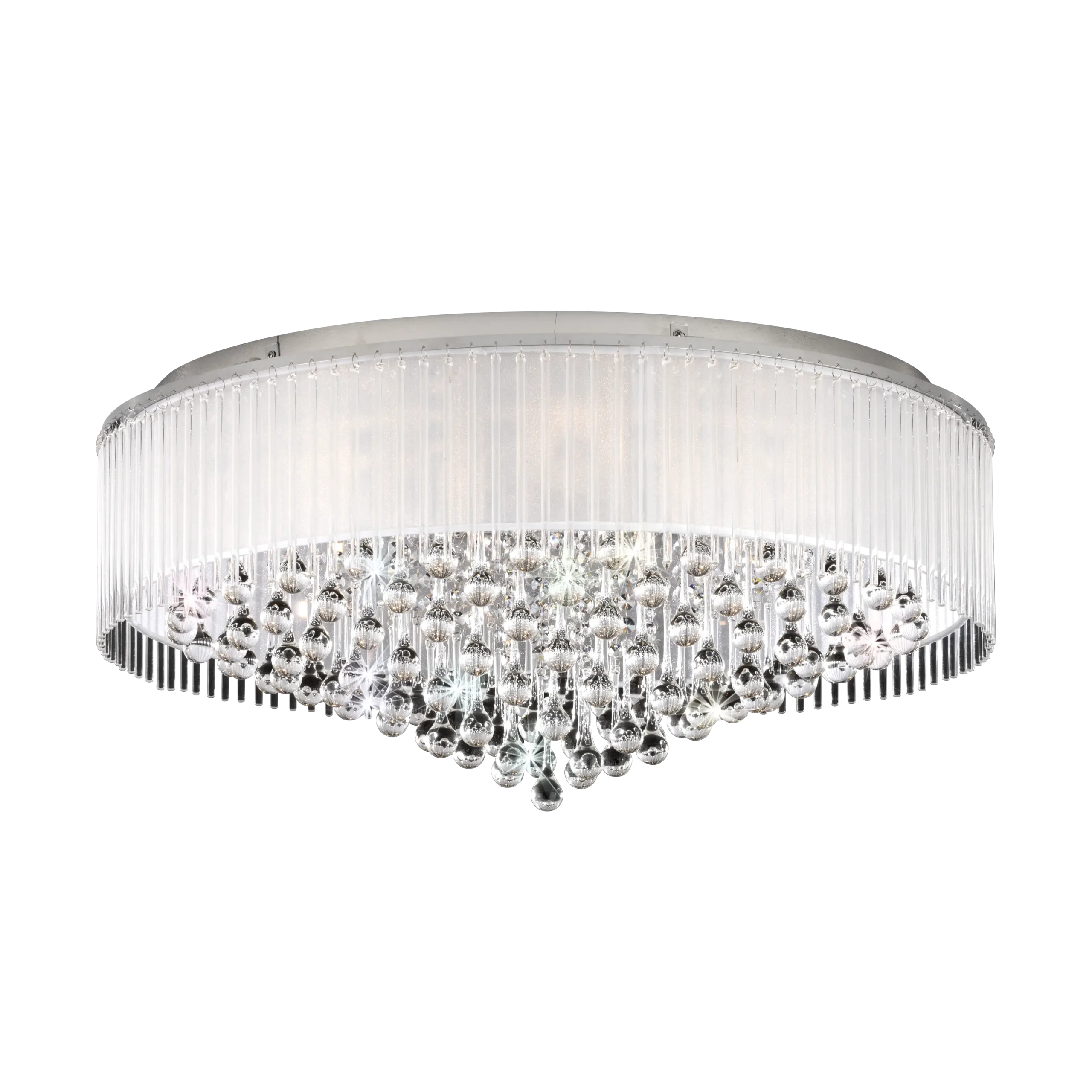 Glamorous Modern Design: Features twelve integrated G9 LED modules enshrouded in clear glittery film shades on a polished Chrome Steel structure—an eye-catching centerpiece for living rooms, dining areas, or entryways.