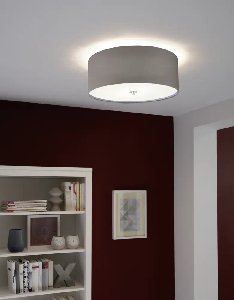 PASTERI 3‑Lamp Ceiling Lamp – Satin-Nickel Steel, Anthracite-Brown Fabric Shade with Frosted Glass Diffuser, 475mm Ø, E27, Modern Flush Mount